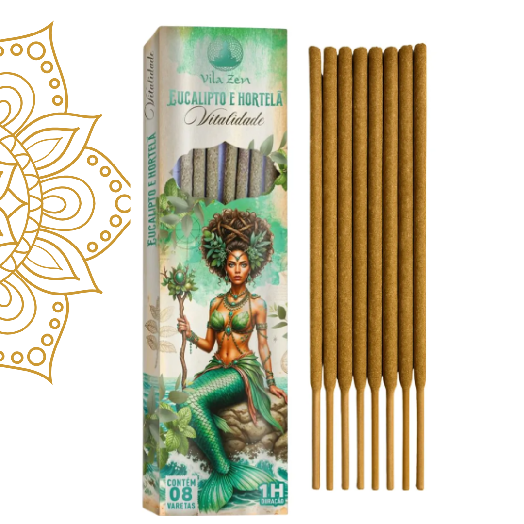 O incenso é apresentado em varetas finas, garantindo queima uniforme e aroma constante. Cada embalagem contém 8 unidades, que proporcionam momentos de relaxamento e purificação do ambiente. Com fórmula sem carvão, a queima é mais limpa e saudável para quem utiliza com frequência.